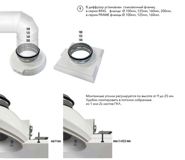 Дизайнерские диффузоры SECRET являются частью вентиляционной системы. Выполнены из гипсополимера, корпус диффузора монтируется в потолок или стену из гипсокартона, после покраски становится с потолком одним целым. Это поистине элегантное решение, сохраняющее функцию. Форма диффузоров позволяет принимать поток воздуха из вентиляционной трубы и плавно распределять его в помещение. Легко и герметично стыкуется с стандартными вентиляционными трубами диаметром 100, 125, 160 и 200 мм.